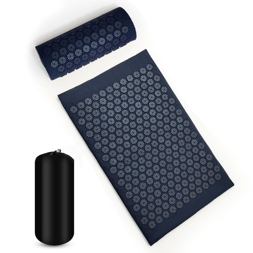 Acupuncture Massage Cushion with Pillow Body Pain Relief Stress Spike Relieve Yoga Acupoint Pad Mat with Storage Bag Set Feature: 100% cotton cloth, ABS plastic nail, environmental protection export 18D high density sponge.